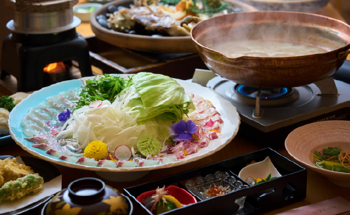 フードプロデューサー平山友美さんが、淡路島うずしお温泉 うめ丸さんにて食した『玉ねぎフォンデュ鯛しゃぶしゃぶコース』