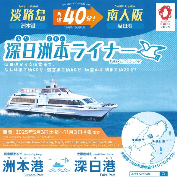 深日洲本ライナー 5月3日(土祝)より土日祝日限定で運航中