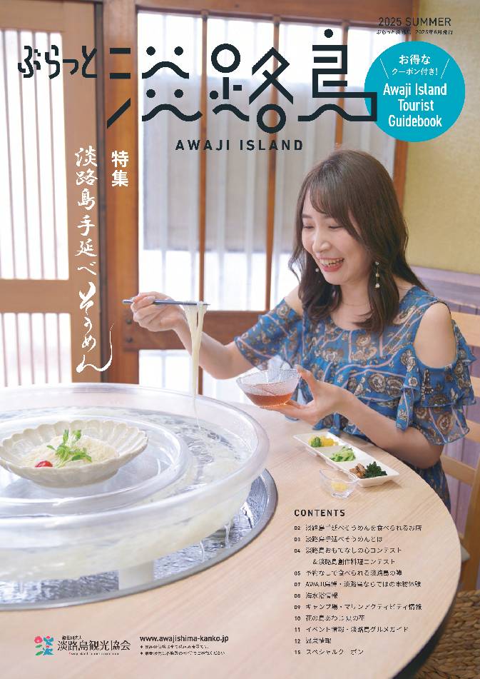 今号は「淡路島手延べそうめん」を特集。ほかには「淡路島の鱧」、海水浴情報・キャンプ場・マリンアクティビティ情報など淡路島の夏情報満載です。